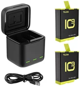 Зарядното устройство 3 в 1 от Telesin ви позволява бързо да зареждате до 3 батерии GoPro Hero 9 и Hero 10 едновременно. Лек и компактен - винаги можете да го имате под ръка. Неговата сложна система за сигурност прави използването му безрисково. Нещо повече, вградените LED индикатори ви дават информация в реално време за състоянието на зареждане. Друго предимство на зарядното устройство е силиконовото отделение, където можете да съхранявате до 2 TF карти с памет. В комплекта ще намерите и 2 акумулаторни батерии за GoPro Hero 9/Hero 10.