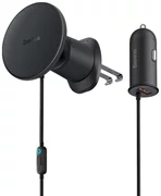 Baseus CW01 магнитна стойка за кола за решетка с USB-A зарядно устройство, 15W + 25W (черна)