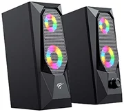 Вземете правилната атмосфера по време на вълнуващи игри. Високоговорителите 2.0 осигуряват висококачествен стерео звук и привличат вниманието с RGB фоново осветление. Те също са оборудвани с конектори: USB и 3.5 мм аудио.