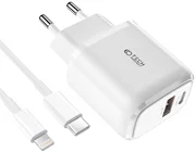 Удобен и практичен комплект зарядно устройство C20W и кабел с Lightning конектор от марката Tech-Protect.