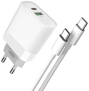 Мрежово зарядно устройство XO L64, USB + USB-C (бяло)