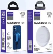 Магнитно индукционно зарядно устройство JoyRoom с мощност до 15W за Apple iPhone, оборудвано със система Magsafe.