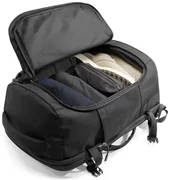 Основното отделение е просторно за подреждане на по-големи предмети, като дрехи или аксесоари за пътуване, с допълнителни отделения за тоалетни принадлежности и други дребни предмети. Разполага със специално отделение за лаптоп и допълнителен джоб, който осигурява място за таблет или други устройства. Раницата разполага и с множество външни джобове, включително еластичен страничен джоб за бутилка или чадър и защитен джоб с цип, идеален за документи, портфейл или ключове.