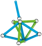 Комплектът включва магнитни пръчици и топчета, които осигуряват издръжливост и стабилност на всяка конструкция. Тези лесни за свързване компоненти гарантират, че дори най-малките инженери могат да строят и модифицират идеите си с лекота. Налична е и квадратна основа, която децата могат да използват.