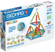 Открийте Geomag Supercolor RE - комплект, който приканва младите строители на възраст от 3 години нагоре да навлязат в творческия свят на строителството с магнитни блокчета. Пакетът съдържа цели 60 елемента, които съчетават обучението със забавлението, предоставяйки почти неограничени възможности за конструиране. Играчката е изработена от 100% рециклирана пластмаса, така че ще бъде чудесен избор и за тези, които са отдадени на екологичните решения.