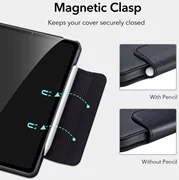 Калъфът е оборудван с магнитна закопчалка, както и каишка, където можем да съхраняваме стилуса.