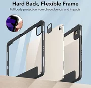 Калъфът има гъвкава ударопоглъщаща рамка и твърди раници, за да предпази устройството ви от повреди, като същевременно не покрива напълно оригиналния вид на вашия iPad.
