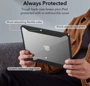 Калъфът има гъвкава ударопоглъщаща рамка и твърди раници, за да предпази устройството ви от повреди, като същевременно не покрива напълно оригиналния вид на вашия iPad.