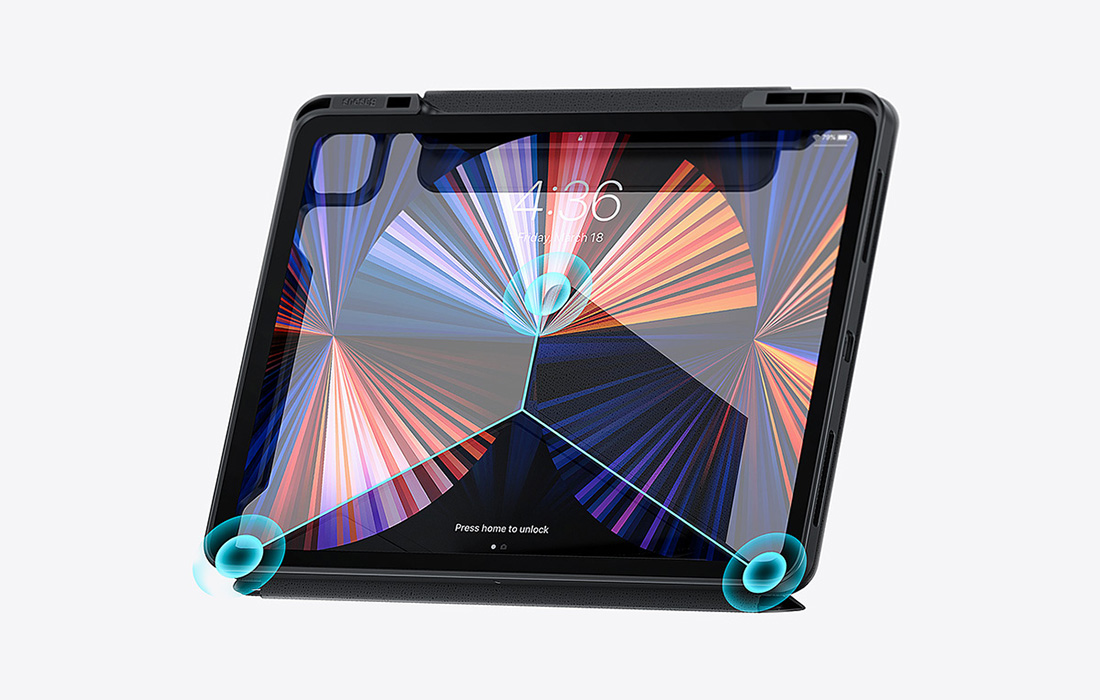 Калъфът е проектиран по такъв начин, че да осигури по-голяма стабилност на поставения върху него таблет. Сега можете свободно да го поставите на бюрото си, без да се притеснявате, че ще се преобърне! Освен това, до 108 вградени магнита ви позволяват да поставите вашия iPad стабилно вертикално или хоризонтално. Поставете устройството на плота и се насладете на комфорта, докато гледате филми, рисувате, водите бележки или сърфирате в социалните медии!