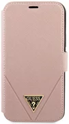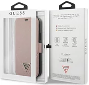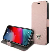 Стилният калъф Guess от колекцията Saffiano се отличава с елегантна карирана кожа от шафиано, украсена с триъгълно метално лого GUESS. Калъф от висок клас еко кожа сафиано е отлично предложение за хора, които ценят не само изключителен външен вид, но и високо качество и функционалност. Благодарение на характерното покритие всички аксесоари от тази колекция са изключително елегантни и луксозни. - Стилен защитен калъф от Guess е проектиран да защитава вашия смартфон и да му придаде елегантен вид- Гъвкавите и меки страни с TPU позволяват лесен монтаж- Покрийте с три вътрешни отделения за карти- Сгъваем гръб за мултимедийно гледане oacute; в и свободни ръце връзки -Колекция магнитна закопчалка: Saffiano - ТриъгълникТип лого: КнигаМатериал: TPU/PC/Екологичен кожаЦвят: РозовСъвместимост: iPhone 12/iPhone 12 Pro 6.1"продукт, произведен под Guess License