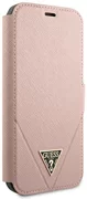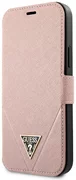 Стилният калъф Guess от колекцията Saffiano се отличава с елегантна карирана кожа от шафиано, украсена с триъгълно метално лого GUESS. Калъф от висок клас еко кожа сафиано е отлично предложение за хора, които ценят не само изключителен външен вид, но и високо качество и функционалност. Благодарение на характерното покритие всички аксесоари от тази колекция са изключително елегантни и луксозни. - Стилен защитен калъф от Guess е проектиран да защитава вашия смартфон и да му придаде елегантен вид- Гъвкавите и меки страни с TPU позволяват лесен монтаж- Покрийте с три вътрешни отделения за карти- Сгъваем гръб за мултимедийно гледане oacute; в и свободни ръце връзки -Колекция магнитна закопчалка: Saffiano - ТриъгълникТип лого: КнигаМатериал: TPU/PC/Екологичен кожаЦвят: РозовСъвместимост: iPhone 12 mini 5,4"продукт, произведен под Guess License