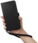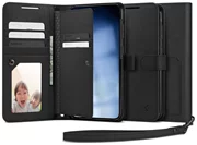 Забележителен калъф с класически и елегантен дизайн - Spigen Wallet "S" Plus. Калъфът е изработен от полиуретанова кожа, което го прави издръжлив и удобен за използване. Вътрешността има интегрирани джобове за кредитни карти и пари, които също са изработени от полиуретанова кожа.Вътрешността е покрита с мек материал, който предпазва от надраскване. Телефонът е разположен върху основа от втвърден материал, така че портфейлът "S" осигурява пълна защита и амортизация срещу всякакви удари.