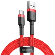 Baseus Cafule е висококачествен USB - USB Type C кабел, предназначен за предаване на данни и зареждане на устройства. Благодарение на подсилената си конструкция, той има повишена устойчивост на прекъсване (допълнителна защита на кабела при щепсела и по-дебела оплетка, налична само във версията Cafule). Освен това в конструкцията са използвани материали, подсилващи конструкцията на щепселите (например алуминий).