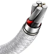 Подобреното медно ядро е невероятно ефективен проводник, който прави възможно презареждането на устройствата толкова бързо. Този процес се подобрява и от висок клас, издръжлив конектор, който се вписва перфектно в порта на телефона и остава сигурно на място, без да се разхлабва или пада. Нещо повече, допълнителната защита от гума предпазва входа на телефона от драскотини.