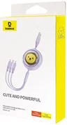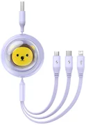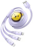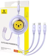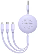 Кабел за зареждане 3 в 1 Baseus USB към USB-C, USB-M, Lightning 3,5A, 1,1 м (лилав)