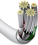 Кабелът се състои от нишки от подсилена, метална мед. Той е защитен от обвивка, изработена от издръжлив ABS. Благодарение на това кабелът е устойчив на огъване, счупване или разкъсване. Нещо повече, мястото, което е изключително податливо на повреда - връзката между кабела и съединителя - е допълнително защитено с TPE щит. Продуктът ще ви изненада с надеждна работа.