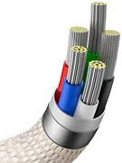 Кабелът е изработен от здрава пластмаса и завършен с алуминиева сплав, което го прави устойчив на заплитане. Освен това конекторът на продукта е преминал през редица тестове за издръжливост, което се изразява в дълготрайност. Нещо повече, кабелът стои стабилно в порта, а използването на медна сърцевина допринася за по-бързото зареждане и по-добрата проводимост. Освен това интелигентен чип контролира температурата, като осигурява безопасността на оборудването.