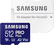Samsung MicroSDXC 512GB PRO Plus + SD адаптер (2023) е от клас 10.
