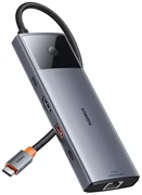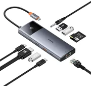 Хъб 10 в 1 Baseus Metal Gleam II Series, USB-C към 1xHDMI, USB-A (10Gbps), USC-C, 2xUSB-A, Ethernet RJ45, SD/TF карта, 3,5 мм мини жак, USB-C(PD)