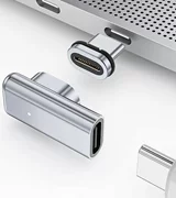 Магнитният адаптер USB-C към Thunderbolt 3 и 4 е модерно решение, което предлага невероятно удобство и функционалност. С магнитен конектор, който позволява лесно свързване и разединяване с една ръка, адаптерът осигурява максимално удобство. Той поддържа зареждане с параметри 20V/5A, което позволява бързо зареждане на устройства с мощност до 100 W. Благодарение на компактния си дизайн адаптерът не пречи на едновременното свързване на други устройства, което го прави идеален за ежедневна употреба.
