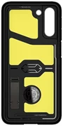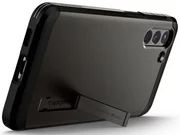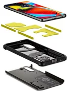 Случаят отсерияTough Armorна Spigen е новото покритие на компанията. Нейната конструкция от две части е изработена от устойчива на износване термопластична пластмаса и армираща поликарбонатна рамка. Вътре в капака е пълнеж под формата на технологична пяна, която осигурява допълнителен защитен слой от неравности или падане на устройството.