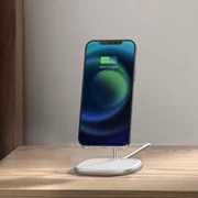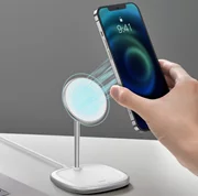 Зарядното устройство е проектирано специално за телефони от серия Apple 12, които имат магнитен калъф. Двойният магнитен пръстен гарантира, че телефонът ви автоматично ще започне да се зарежда и ще остане здраво на зарядното устройство, така че не е нужно да се притеснявате за падането му. С настройката на ъгъла на наклона от 15° във всички посоки можете удобно да гледате видеоклипове или онлайн лекции, докато ръцете ви са свободни. Освен това можете да зареждате телефона си както в портретни, така и в пейзажни позиции.