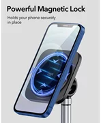 Стабилната и сигурна телефонна стойка HaloLock от марката ESR е най-новото предложение за потребителите на Apple с технологията MagSafe. Дръжката е оборудвана със силни магнити, завършени с нехлъзгащ, силиконов 360 градусов пръстен. Това решение гарантира безопасно хоризонтално или вертикално задържане на устройството. Разширеният дизайн ви позволява напълно да регулирате височината на багажника, да осигурите перфектното прилягане и висок комфорт при използване под всякакъв ъгъл.Допълнително предимство е балансираната основа, оборудвана с закачлива подложка за по-добра стабилност и адхезия към земята.