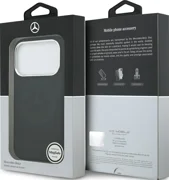 Гърбът е украсен с две отличителни лога на марката -релефно лого на Mercedes-Benz в центъра исребърно лого, поставено в долната част, което придава на аксесоара уникален и луксозен характер. Дизайнът е допълнен спрецизни изрези и перфектно монтирани странични бутони, с подчертано внимание към детайлите и висококачествена изработка.