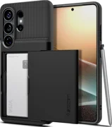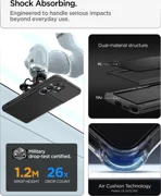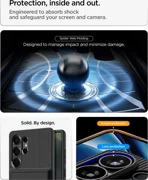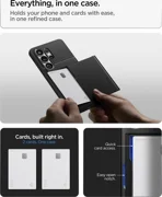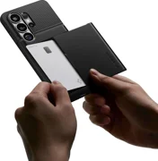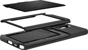 Spigen Slim Armor CS е хибриден калъф, който съчетава усъвършенствана защита с практичната функция на скрит слот за карта. Двуслойната конструкция от здрав поликарбонат и гъвкав TPU осигурява сертифицирана защита от военен клас, като ефективно предпазва телефона ви от повреди при случайни изпускания. Тънкият профил гарантира, че калъфът не добавя излишен обем, като запазва преносимостта на устройството при ежедневна употреба.