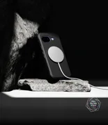 Вграденият магнитен пръстен позволява безжично зареждане и стабилно свързване към MagSafe зарядни устройства, държачи и портфейли без отстраняване. Магнитите придържат плътно аксесоарите, като осигуряват сигурно закрепване във всяка ситуация. Калъфът ефективно предпазва устройството от изпускане благодарение на сертификата Military Grade, което означава, че е преминал редица тестове за издръжливост. Дизайнът абсорбира ударите и предпазва телефона от механични повреди.