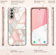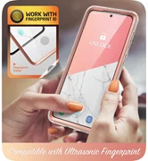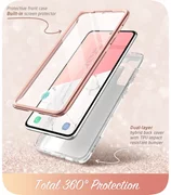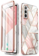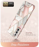 Тънка форма на бронирана защита е случай Supcase Cosmo. Корпусът е изработен от два допълващи материала - амортизиращ TPU и подсилващ поликарбонат. Този дизайн, въпреки намалените размери по отношение на конвенционалните брони, позволява ефективно овлажняване на екстремни падания. В допълнение, на предния панел е оборудван с рамка, която изпълнява поликарбонат високоскоростен с твърдост 5H, което позволява не само да се отдели на екрана в прякото положение на телефона с дисплея към плоската повърхност, но също така предпазва предната част на телефона от драскотини, когато ще падне неравенство.