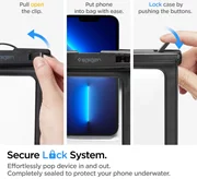Универсален водоустойчив защитен калъф за повечето мобилни устройства до 8.2 инча - с дисплей до 6.9 инчаДизайнът на Spigen A601 е идеален за необичайни ситуации като гмуркане и плуване.