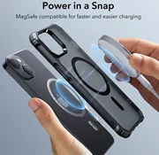 ESR Air Armor HaloLock калъф от една част, състоящ се от твърди прозрачни раници и гъвкава рамка наоколо, изработена от термопластичен, мек материал, който допълнително предпазва устройството от повреди. Ъглите на Air-Guard са допълнителна защита на нашето устройство — те перфектно абсорбират ударите и възпират възможните падания.