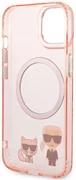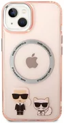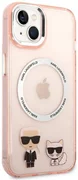 Калъфът е украсен с изображения на известния дизайнер Карл Лагерфелд и неговата котка Choupette, които перфектно подчертават уникалния дизайн на вашия iPhone. Калъфът е снабден с магнитен пръстен, съвместим с безжичното зарядно устройство MagSafe, което осигурява бързо и лесно зареждане.