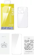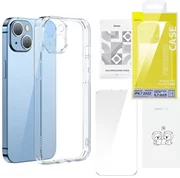 Комплект за защита Baseus SuperCeramic прозрачен стъклен калъф и закалено стъкло за iPhone 14 Plus + комплект за почистване