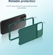 Nillkin CamShield Pro е изработен от екологично чисти материали от PC и TPU. Неплъзгащото се покритие на страните осигурява допълнителна защита и прави калъфа да пасва идеално в ръката. Освен това той изглежда страхотно и се усеща приятно на допир.