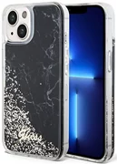 Колекцията се отличава с неочевиден и хладен мраморен мотив, който е допълнително подчертан от блестящи частици с блестящи на светлината пайети, които променят подредбата си при промяна на ъгъла на наклона. Допълнителна декорация е емблематичното златно лого на Guess във винтидж стил, което подчертава изисканата естетика на корпуса. Логото на Guess е горещо релефно и след това е покрито с деликатен TPU слой, който го прави устойчиво на износване и гарантира траен и естетичен вид за дълго време. Златното лого на Guess е не само красива декорация, но и потвърждение за отличното качество и автентичността на продуктите, за които отговаря тази марка.
