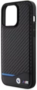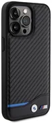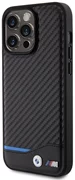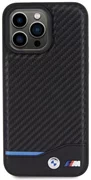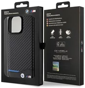 Ексклузивният калъф за BMW от колекцията Leather Carbon е твърд калъф, изработен от комбинация от поликарбонат (гръб) с карбонова тъкан и екологична кожа, а ръбовете са изработени от гъвкав полиуретан, който осигурява защита и лесен монтаж. BMW е известна и ценена с елегантния си дизайн и отличните си покрития. Калъфът е допълнително украсен със сини шевове, които са цветово съгласувани с цветовата схема на марката BMW. Деликатната кожа, уникалният мотив от въглеродна тъкан и стилните детайли придават на колекцията класическа, елегантна форма. Цялото е увенчано с малко метално лого на BMW и пакета М, което едновременно потвърждава най-високото качество и автентичността на продукта.