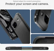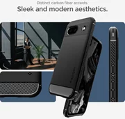 Сравнително тънък защитен калъф. Изработен е от издръжлива и гъвкава пластмаса TPU, устойчива на износване. Издръжливата броня е покрита с лъскави въглеродни влакна, които създават елегантна въглеродна текстура. Продуктът пасва идеално, напълно функционален е, не ограничава достъпа до външните портове и ефективно предпазва устройството от надраскване или изпускане. Rugged Armor изкушава с модерния си дизайн!