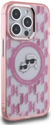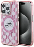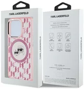 Този елегантен калъф привлича вниманието с монограма "KL", разположен по цялата му повърхност, което му придава изключително дизайнерски вид. Структурата на калъфа е подсилена с алуминиеви вложки около рамката на камерата и страничните бутони. Тази колекция се допълва от щампа, изобразяваща легендарния дизайнер с любимата му котка Choupette, поставена в центъра на магнитния пръстен.