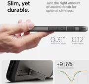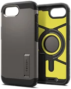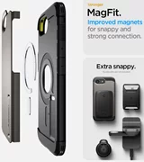 Случай от сериятаТвърда броня Mag маркиSpigen е подобрена версия на своя предшественик.Калъфът е снабден с магнитен пръстен, съвместим със системата за монтиране и безжично зареждане MagSafe, което осигурява бързо и лесно използване на технологиите на Apple.