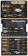 Функционалният комплект инструменти Deko Tools DKMT95 ще допълни оборудването на всеки DIY ентусиаст. С негова помощ ще извършите необходимите ремонтни и ремонтни работи. Комплектът съдържа 95 артикула, които се характеризират с универсална употреба и солидна изработка. В него ще намерите, наред с други, различни видове клещи, гаечни ключове, гнезда или отвертки. Големият, просторен калъф ще ви позволи лесно да съхранявате и транспортирате всички инструменти.