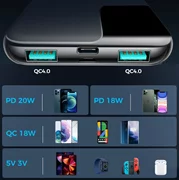 Последните две се използват и за зареждане на powerbank. Аксесоарът има дисплей, който показва състоянието на заряда му. На изхода USB Type-C можем да зареждаме телефона в стандарта PowerDelivery до 20W.