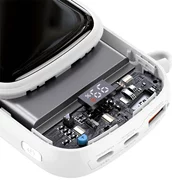 Обмисленият дизайн на захранващата банка води до висок комфорт при употреба. Лесният за разчитане дисплей предоставя информация за състоянието на батерията, а благодарение на ниското си тегло продуктът не създава проблеми при транспортиране. Практичната щипка ви позволява да скриете края на вградения кабел, така че не е нужно да се притеснявате, че ще го повредите.