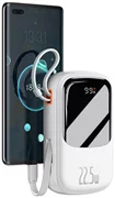 Baseus Qpow PRO powerbank с USB-C кабел, USB-C, USB, 20000mAh, 22.5W (бял)