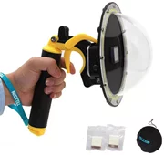 Куполът на корпуса е изработен от немско акрилно стъкло, което се отличава с висока якост, отлична защита на устройството и също така осигурява ясни чисти изображения. Разстоянието между обектива и горната му част е 70 мм, което осигурява оптимален изглед. Аксесоарът е оборудван със специални елементи, които го предпазват от изпаряване. Също така не е нужно да се притеснявате за отражения, нарушаващи качеството на вашите снимки и видеоклипове. Освен това зрителното поле от 180° ви позволява да създавате страхотни снимки.