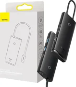 Главината на Baseus се отличава с компактен дизайн, благодарение на който можете успешно да го съхранявате в раницата или чантата си. Освен това, ABS пластмасовото покритие е отговорно за издръжливостта на устройството, а кабелът, оплетен с траен материал, осигурява устойчивост на износване. Освен това индикаторът за бяла светлина ще ви уведоми кога устройството работи.