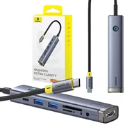 Baseus UltraJoy 7-in-1 USB-C към HDMI +2xUSB3.0+PD+SD/TF+3.5mm Hub (сив).